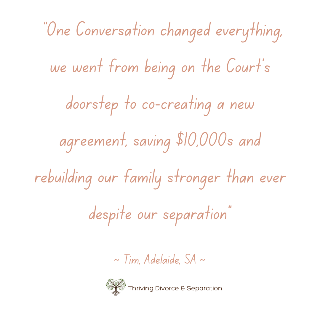 Often it only takes on member of separating couple to shift a dynamic, one willing to do things different, one skilfully directed conversation using a collaborative and conscious framework. One step to start your journey towards securing your families' thriving financial future and wellbeing.